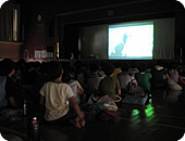 夏休みも終わりに近づいた8月28日、豊川市立長沢小学校体育館で『わんこTHE MOVIE2』無料上映会が実現。子ども会の世話役をするお母さん方が、手際よく準備に当たってくれました。