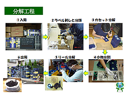 ・分解後、栃木県の知的障害者就労支援施設で一時保管。素材ごとにリサイクル工場へ出荷。