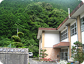 全校生徒数、わずか7人の山に囲まれた小学校。少人数のため、子どもたちは学年を問わず、大の仲良し。給食の時間も皆で一つのテーブルを囲み、まるで本物の家族のようです。
