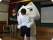 2007年から始めたこの活動の11回目にあたる今回は、子どもたちに人気のキャラクター“トロ”も参加。静かな小学校に、7人の子どもたちの歓声が上がりました。