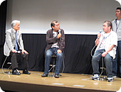 朝10時の早稲田大学作品上映を皮切りに最後の日本大学まで、8時間以上に渡る大上映会でしたが、会場のマルチシアターは、学生さんと学校関係者、『お台場合衆国2009』の来場者の皆さんで、各回、ほぼ満席の盛況でした。一作品ごとに監督を交えて、映画評論家・佐藤忠男さんと、第一線で活躍中の映画関係者、フジテレビの映画プロデューサーのトークセッションも実施。
