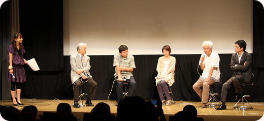 トークセッションに参加してくださった映画関係者は、「誰も守ってくれない」の監督・君塚良一さん、「踊る大捜査線THE MOVIE」シリーズの監督・本広克行さん、「アマルフィ 女神の報酬」のプロデューサー・和田倉和利さん、「20世紀少年」3部作のプロデューサー・甘木モリオさん。そのうえ、「ヴィヨンの妻」の封切りを控えた根岸吉太郎監督も飛び入り参加。そうそうたる大先輩に囲まれながら、堂々と自作について語る“若い監督たち”の姿が印象的でした。