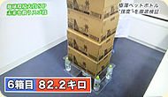 その強さをわかりやすく映像化するためにはどうすればよいか?開発を担当した技術者とともに、実験方法を考え・・・8本の「いろはす」の上に13キロのケースをいくつ載せることができるのかに挑戦しました。結果は6箱、80キロを超える重さに耐えることができたのです。そして、その箱を「いろはす」がたわみながらも支える様子をカメラは見事に捉えました。