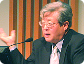 後半では、ソフィアバンクの藤沢久美副代表を進行役にパネルディスカッションが行われた。この中で、坂根正弘経団連副会長は「京都議定書は不公平。米国不参加と中国の削減義務無しやEUは27カ国で一つの目標はいかがなものか」と指摘。桝本晃章日本動力協会会長は「京都の次のステップを考えるべき。アジア地域での仲間作りが重要」と発言しました。逢見直人日本労働組合総連合会副事務局長は「日本の削減目標が突出することを懸念する。それは雇用の海外流出にもつながる」と主張しました。環境に関する専門家の山本隆三富士常葉大学教授は「京都議定書から12年以上を過ぎて、GDPが中国、ブラジルなど新興国で相当伸びている。アメリカ、EUの2大累積排出国にはもっと責任をもってもらう必要がある。京都議定書の単純延長はあり得ない」と主張するなど、およそ1時間15分のパネルディスカッションは熱い空気を残して幕を閉じました。