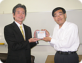 川崎福祉センター3階の会議室で盲人図書館の黒川功二管理係長にCD化された「フジポッド文庫」3セット(15作品)が手渡されましたが、この日は録音図書の製作活動をしている地元ボランティア団体「水車の会」の方々も同席し、「プロのアナウンサーが朗読した作品を参考にして今後の活動に少しでも役立てたい」と話していました。