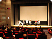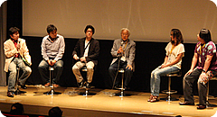 朝10時の立教大学から、最終上映の武蔵野美術大学まで、8時間以上に及ぶ大上映会でしたが、会場のマルチシアターは、学生さんと学校関係者、『お台場合衆国2010』の来場者の皆さんで、各回、ほぼ満席の盛況でした。一作品ごとに監督を交えて、映画評論家・佐藤忠男さんと、第一線で活躍中の映画関係者、フジテレビの映画プロデューサーのトークセッションを実施。