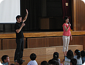 またフジテレビのエコアナ川端健嗣アナ、梅津弥英子アナによる特別あなせん(アナウンサーせんせい)講座では子ども達によく響く声の出し方や早口言葉を指導。その後の朗読会では、子ども達も参加。夏休みの忘れられない思い出になりました。