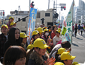 子どもたちが応援した場所は「かえつ学園西交差点」。