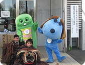 3月31日宮城県気仙沼市と南三陸町に向かいました。ムックが子どもの健康と環境に関する環境省の「エコチル調査」宮城ユニットのキャラクターになっている関係で、震災直前にも宮城県を訪れているガチャピン・ムックが同行。