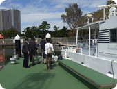 周囲を海に囲まれている台場でもいざという時に役に立つのではと、「洋上での発電」や「賢い電気の使い方」を教えていただきました。