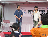 対がん協会の「がん検診企業アクション」のパートナー企業でもあるフジテレビでは、ステージで奥寺健アナウンサーと梅津弥英子アナウンサーによる「アナウンサーミニ朗読会」と、藤村さおりアナウンサーとアトランタオリンピック出場の田中光先生による「食育イベント」行いました。