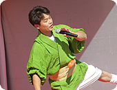 リズムに乗ったキレのある体操に、会場の皆さんもステージ前に集まって一気に楽しげな雰囲気に。更に見事な連続バック転まで披露してくれ、会場は「おぉ~!」のどよめきと拍手に包まれました。