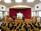 震災から8か月経った11月9日、岩手県大船渡市でフジテレビが継続して行っている「こどもおうえんプロジェクト・食育出前授業『ハロー!どっこくん。』」を開催しました。