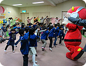 「特別にお友達が来ているよー」と言うと、子どもたちは「えっ?どっこくん!?」。スタッフにはちょっとうれしい子どもたちの勘違いです。
