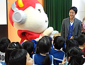 1月26日、宮城県岩沼市でフジテレビが継続して行っている「こどもおうえんプロジェクト・食育出前授業『ハロー!どっこくん。』」を開催しました。今回の訪問は、岩沼市役所の協力もあって実現したものです。