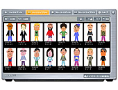 簡単な操作で、顔型、髪型、目鼻口など各々約100種のパーツを自由に組み合わせてキャラを作成し、ステージに配置してストーリーを作成します。小物や風景など480種の画像アイテムも用意。作品は画像や動画に書き出すことができ、キャラクターや編集ファイルは他のユーザーと共有できます。