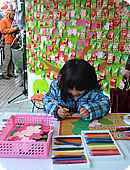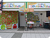 B級グルメなどが立ち並ぶ屋外エリアに設けられたCSR推進室のブースでは、フジテレビがこの1年間継続して行ってきた「こどもおうえんプロジェクト」の活動内容をVTRと写真で紹介するとともに、訪れた子どもたちに「ありがとうのメッセージ」を書いてもらい、木に見立てたボードに貼り付けていくミニ・ワークショップを開催。