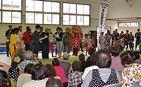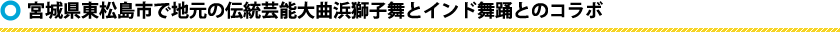 10月6日、宮城県東松島市で、インド大使館の協力のもと「日印友好60周年記念ずっとおうえん。プロジェクト in 東松島 」を開催しました。地元・大曲浜獅子舞とインド仮面舞踊をコラボさせるという初の試みで、会場は大盛り上がり!合せて、ヨガやインド美術のワークショップも開催し、隣接する仮設住宅で暮らす子どもからお年寄りまで幅広い年齢層の方々に楽しんでもらいました。