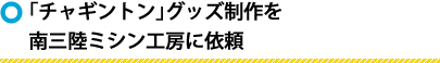 人気アニメ「チャギントン」の商品の制作を南三陸の女性たちが手作業で物づくりを行っている「南三陸ミシン工房」に制作依頼、就労支援のお手伝いをしました。今後も継続的に「南三陸ミシン工房」に制作を依頼し商品化を行う予定です。