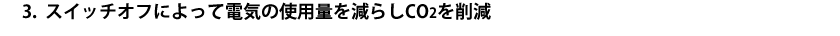 2008年4月~「CO2削減キャンペーン」として、会議室・共用部の照明スイッチオフ、帰宅時パソコン・モニターのスイッチオフを徹底、電気使用の削減量をCO2排出量に換算して社内に知らせています。