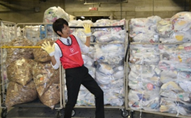 集められたゴミは、地下にあるストックヤードで手作業でさらに分別され、リサイクル工場に回されます。