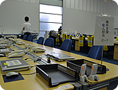 有事のときに司令部となるオペレーションルームは、とにかく広い!約960m2、座席数186(他に打ち合わせスペース84)、300インチのリアプロジェクションモニター。デスクにはパソコンがずらり。備品も沢山準備されていました。 2年に1回大規模訓練を行っているそうですが、普段使用されていないのがもったいない。