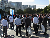 有明コロシアムや国際展示場でイベントなどがあるとたくさんの人が集まるこの広場に、この日は前回を上回る37社、190人が大集合!