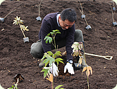 今回の春の植樹全体では2日間で40を超す団体約750名が参加、およそ13,000本の苗木が、植えられました。