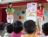 関ヶ原町では年長さんだけが幼稚園で過ごし、それより小さい子どもたちは保育園で過ごすシステムを取っているそうです。そこで今回は関ヶ原幼稚園と、年中・年少さんが通う関ヶ原東保育園の2か所で「ハロー!どっこくん」を開催しました。