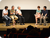 | 佐藤忠男さん・尾野慎太郎監督(武蔵野美術大学)と出演者 | 上原寿一P・本広克行監督・佐藤忠男さん・李鎭雨(イジヌ)監督(日本映画学校) | 土屋健P・佐藤祐市監督(共同テレビ)・佐藤忠男さん・奥田和雅監督(東京工芸大)とスタッフのみなさん |