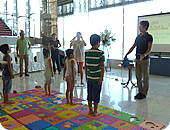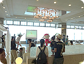 ロビーのチャペルスペースでまず8月5日の夕方には、南三陸町のホテル観洋のロビーにあるウエディングチャペルをお借りして食育イベント「ハロー!どっこくん」を開催。