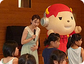 南三陸のキャラクター・オクトパスくん午後には入谷小学校の体育館では仙台放送のキャラクタージュニくんに続いて特別ゲストとして南三陸町のキャラクターオクトパスくんも登場。