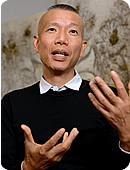 中国籍では、初の受賞。火薬を使いながら、様々なメディアや手段によって常に衝撃的な表現を発表。水墨画的な「火薬絵画」や、野外、空中で火薬を爆発させるパフォーマンスなどで国際的な評価を高め、中国を代表する現代美術家となる。