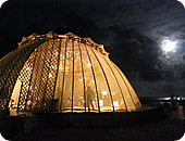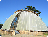圧倒的な直射日光にはまるで無防備な車窓から外を見ると、海を見下ろすちょっとした高台にある、半透明の天文台のような「竹の会所」が、涼しげに待っていてくれました。