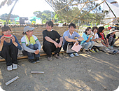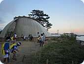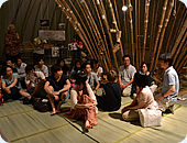 みな真っ赤に日焼けしながら、地元の方々を迎えるべく、今回の集いの場となる竹細工の手作りドームを手入れし、会場を設営してくれていました。