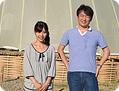 奥寺アナ&学生さんたち こうしてスタートした「竹の会所プロジェクト」は、台風の直撃など幾多の困難を乗り越え、合計28日間、常に30人近く、延べ70人の学生がキャンプ生活をおくりながら手作業で建設を進め、昨年10月に完成しました。