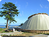 海沿いに佇む「竹の会所 「竹の会所」は滋賀県立大学 環境科学部 環境デザイン学科(陶器浩一研究室)の学生さんたちが、地元の方々と一緒に建てたもの。