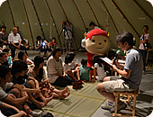 最後は、『雨ニモ負ケズ』をみんなで朗読。ジュニくんも再び登場したので、静かに聞いていた子どもたちも、最後は元気に声を出して朗読していました。
