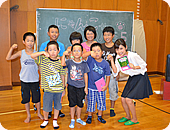 浦田小学校の8人の生徒さんと 心もお腹も満たされたところで、今回訪れた小学校の生徒と初対面。