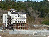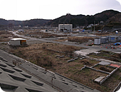 翌日も4か所回り、この日は途中で田老地区の防潮堤があったところを見学させてもらいました。今もまだ残る生々しい津波の爪痕。電灯が無残にも折れ曲がり、住宅があったところは基礎部分しかない状態、1、2階部分が鉄筋むき出しのホテルもあり、津波のすさまじさ、恐ろしさを見せつけられました。こどもたちの目にもきっとこういう光景が焼き付いていると思うと、胸がしめつけられる思いでした。