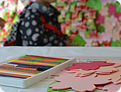 CSR推進室は、昨年も場外エリアで『ありがとう』のメッセージパネルを作るワークショップを実施。今年は、桜や葉っぱをかたどったメッセージカードにみんなの“夢”を書いてもらいました。
