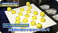 今回の「砂糖・エタノール逆転生産プロセス」場合、開発者の小原聡博士が編み出してくれたのは、手作りの酵母と糖分の模型です。この模型を使うことで、なぜ今までよりたくさんの砂糖やエタノールが抽出できるのかを映像的にも説明することが可能になりました。さらに、小原博士と伊藤アナウンサーの軽妙なやりとりを交えることで、とかくとっつきにくい先端技術の仕組みを、とっつきやすいものに仕上げることができました。