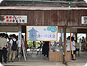会場は、二重らせん構造の特殊な建物として知られる会津さざえ堂の敷地内にある、売店の中でした。歴史を感じる古風な建物の中に、たくさんのお客様と、最前列にの“畳席”には10人程の子どもたち。約1時間の朗読を聴いてくださいました。