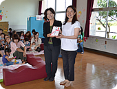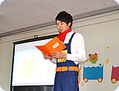 ただ寄贈するのではなく、せっかくなら子どもたちとママ・パパに集まってもらって楽しいことをしよう!と、フジテレビCSR推進室のメンバーと生田竜聖アナウンサーでミニイベントを開催。BSフジでも放送している「チャギントン」のアニメ上映と、以前チャギントンお兄さんを担当していた生田アナと一緒にみんなでダンスを踊りました。