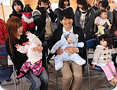 それまで小さなお子さんと触れ合う機会があまりなかったということもあって、ぎこちない話、ぎこちない抱っこで、お父さんお母さんたちも苦笑いでした・・・。