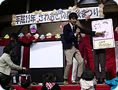 仙台放送のキャラクター、ジュニくん!とてつもない人気です。あっという間に子どもたちに取り囲まれたジュニくんを見て、ちょっと嫉妬・・・失礼、ちょっと驚きました。