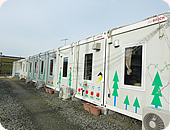 1ヵ所目が、津波被害のため、仮設コンテナで運営されている小野保育所です。みんな朝早かったのか、最初の「おはようございます」の声がやや小さめ。(笑)