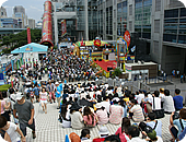 新スタジアムは連日満員で100回以上のライブが行われ、セグウェイに乗ったインフォメーションガールも大好評でした。会期終了時には計1143名の有名人が登場し、来場者の方々を喜ばせました。