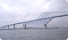 東京ゲートブリッジ その丘を大きく回り込み、針路を北に向けると、ゲートブリッジを正面に、右手にセーリング会場「若洲オリンピックマリーナ」、左手に見える水路はボート・カヌー会場「海の森水上競技場」。更に馬術会場の「海の森クロスカントリーコース」となる造成中の丘が続きます。そしてレスリング、フェンシング、テコンドーが行われる東京ビッグサイトが正面に迫り、その手前に突き出した埋立地がIBC(国際放送センター)予定地とのことでした。
