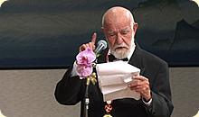 受賞の謝辞は、演劇・映像部門で受賞した劇作家のアソル・フガードさん。南アフリカ出身、アパルトヘイトと闘い続けた82歳です。フガードさんのスピーチは、世界文化賞の意義を考える上で、実に素晴らしいものでした。会場は涙と感動に包まれることになったのです。この場をお借りして、謝辞の一部を紹介します。